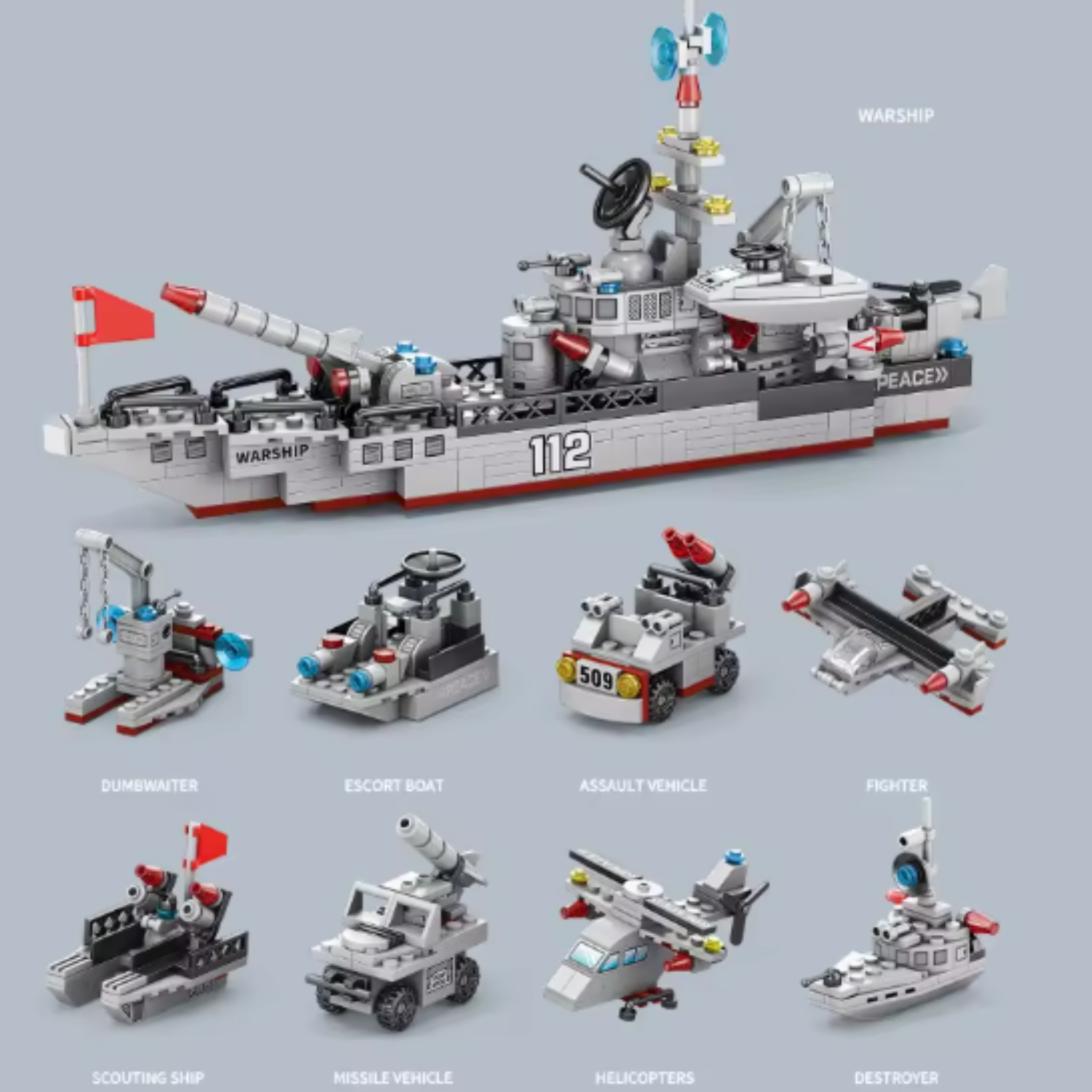 Bring your child’s imagination to life with this 8-in-1 Warship Building Blocks Set!