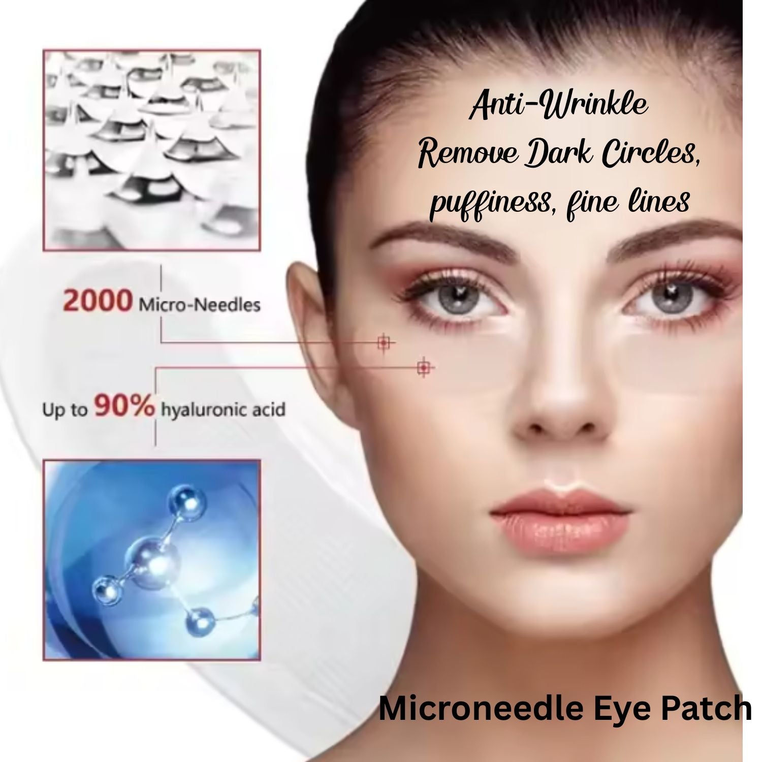 Each patch contains thousands of gentle micro-needles infused with hyaluronic acid, peptides, vitamin E, and vitamin C, targeting wrinkles, fine lines, puffiness, and stubborn dark circles with professional-level results.