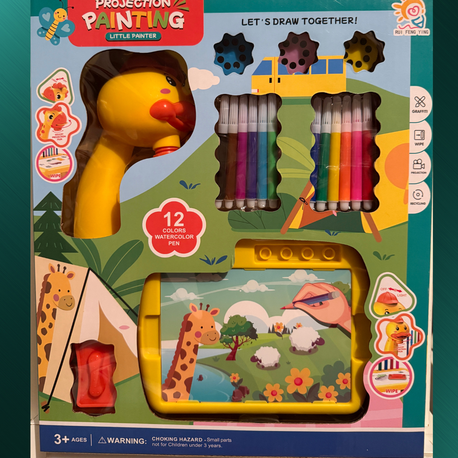 Comes with twelve vibrant watercolor markers—non-toxic, washable, and perfect for little hands.