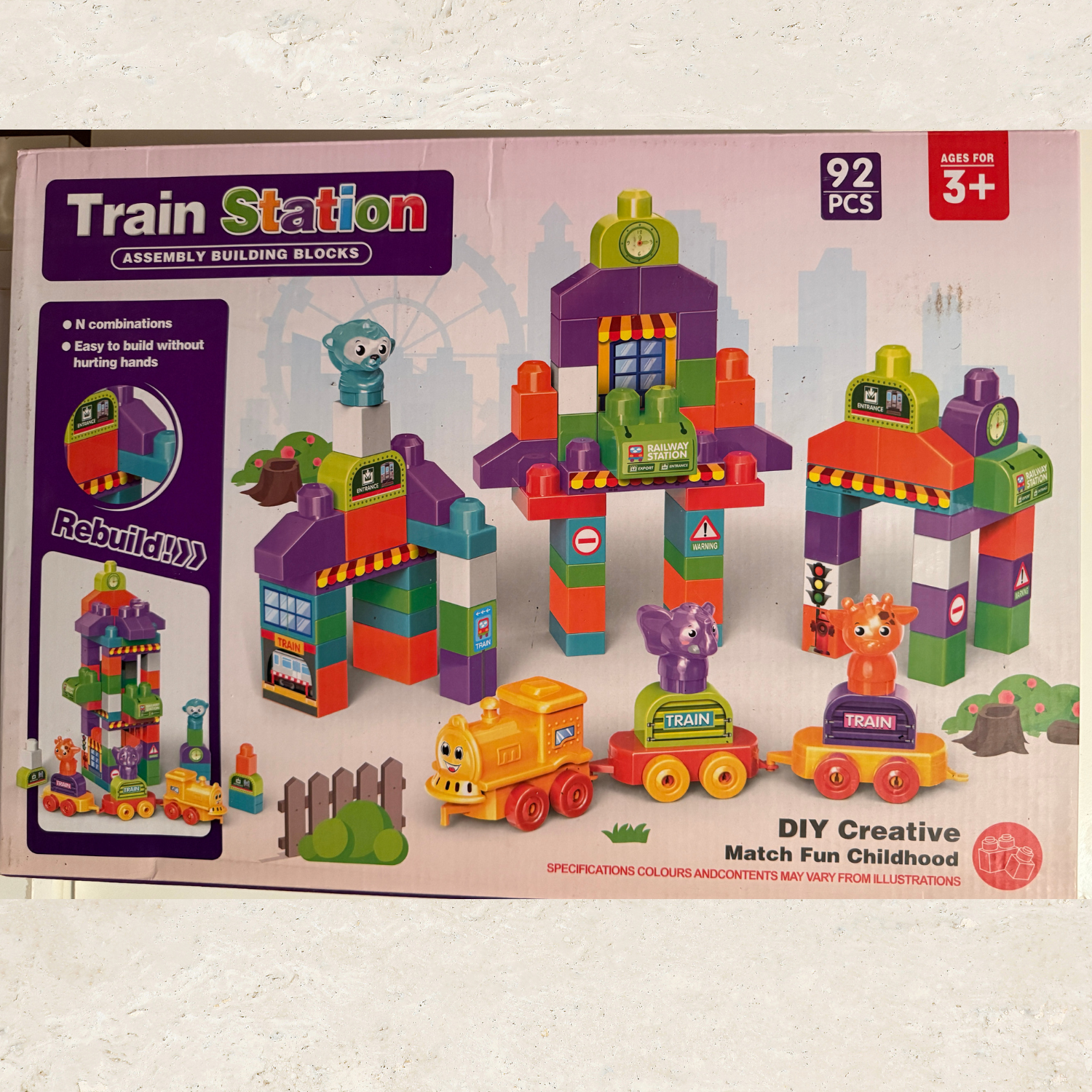 All aboard! Let your child explore endless creativity with this 92-piece Train Station Building Blocks Set, designed to spark imagination, problem-solving skills, and hours of constructive fun.